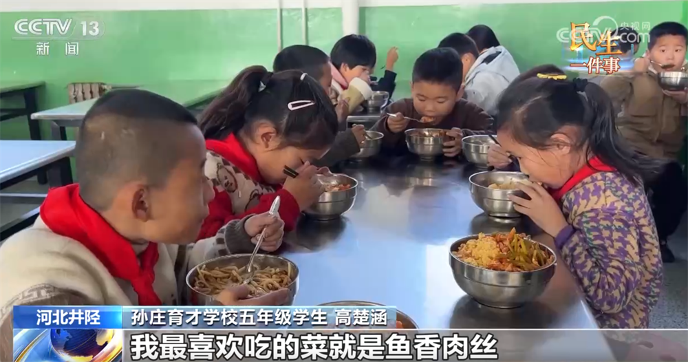 孙庄育才学校校长 王晓强:基本做到了“日进日清”、荤素搭配、营养均衡,孩子们吃得饱、吃得好。
