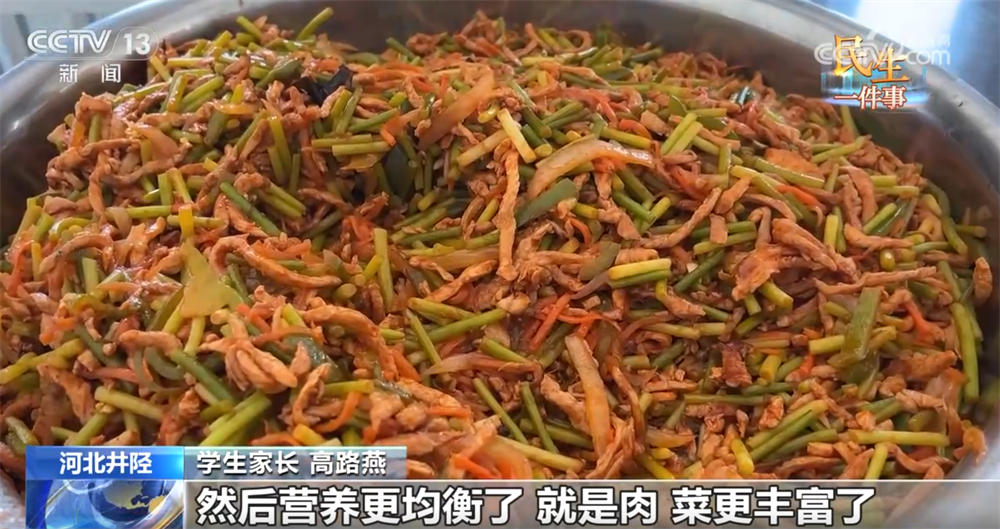 学生家长 高路燕:我问我儿子,说比以前的饭菜还好吃了,营养更均衡了,肉、菜更丰富了。