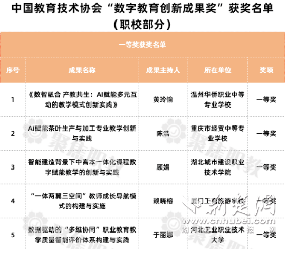 此次评选覆盖基础教育、高等教育、职业教育,参与单位包括北京大学、中山大学、武汉大学、同济大学、哈尔滨工业大学等知名高校。获奖的高职院校有94所,其中一等奖5所。未来,顾娟、许红蕾团队将继续以数字创新为突破口,推动“教育+科技”深度融合,为培养新时代复合型技术人才、助力“中国建造”转型升级持续贡献职教力量。【责任编辑:何青】