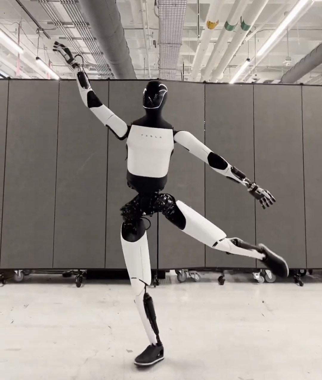 2021 年,在特斯拉的 AI Day 上,马斯克第一次把“人形机器人”搬到大屏幕上。只是当时机器人并不真的存在在物理世界,马斯克安排了一位穿着白色机器人服装的演员上台跳了一支舞,当时这个安排还大受嘲讽,不过这个发布会表达了马斯克对机器人这个概念的最初愿景:特斯拉要做的从来不是只能重复一个机械性动作的机器,而是一个能理解世界运作的智能体。